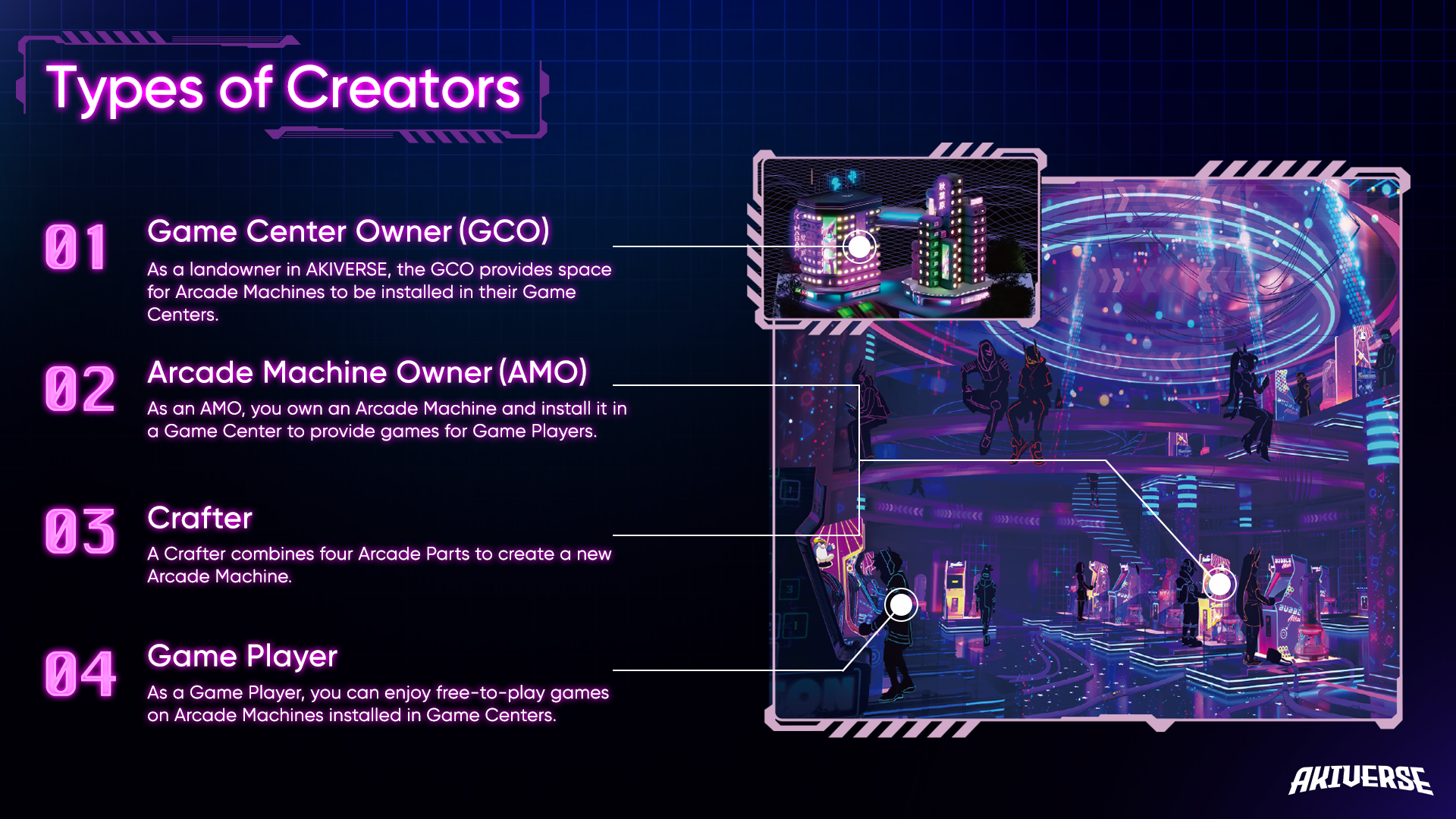 All users of AKIVERSE are creators. The following is a detailed explanation of each of four creative roles we have implemented.