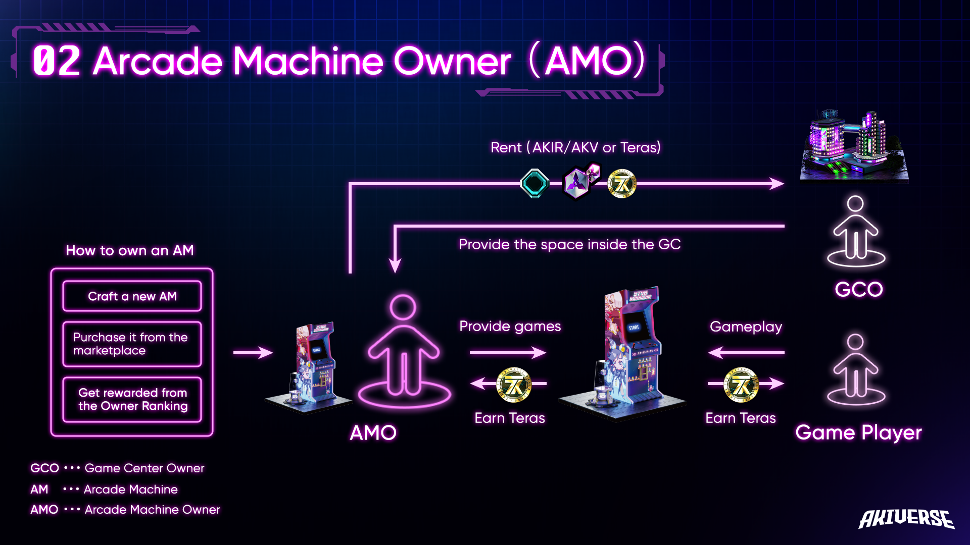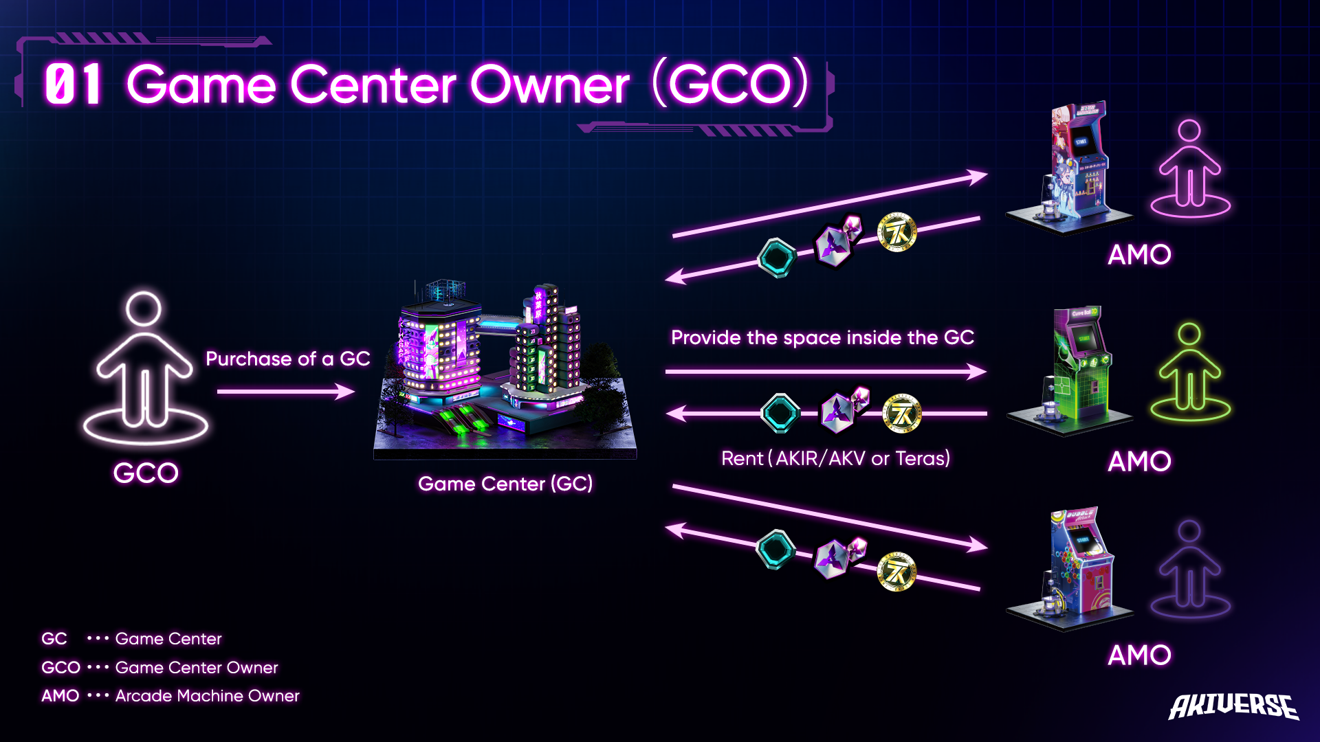 For example, you can earn revenue by renting out the Arcade Machine location for 100 AKIR or equivalent AKV or Teras per hour. The Game Center owner is free to determine the rental rate, inducing a market for this pricing structure.