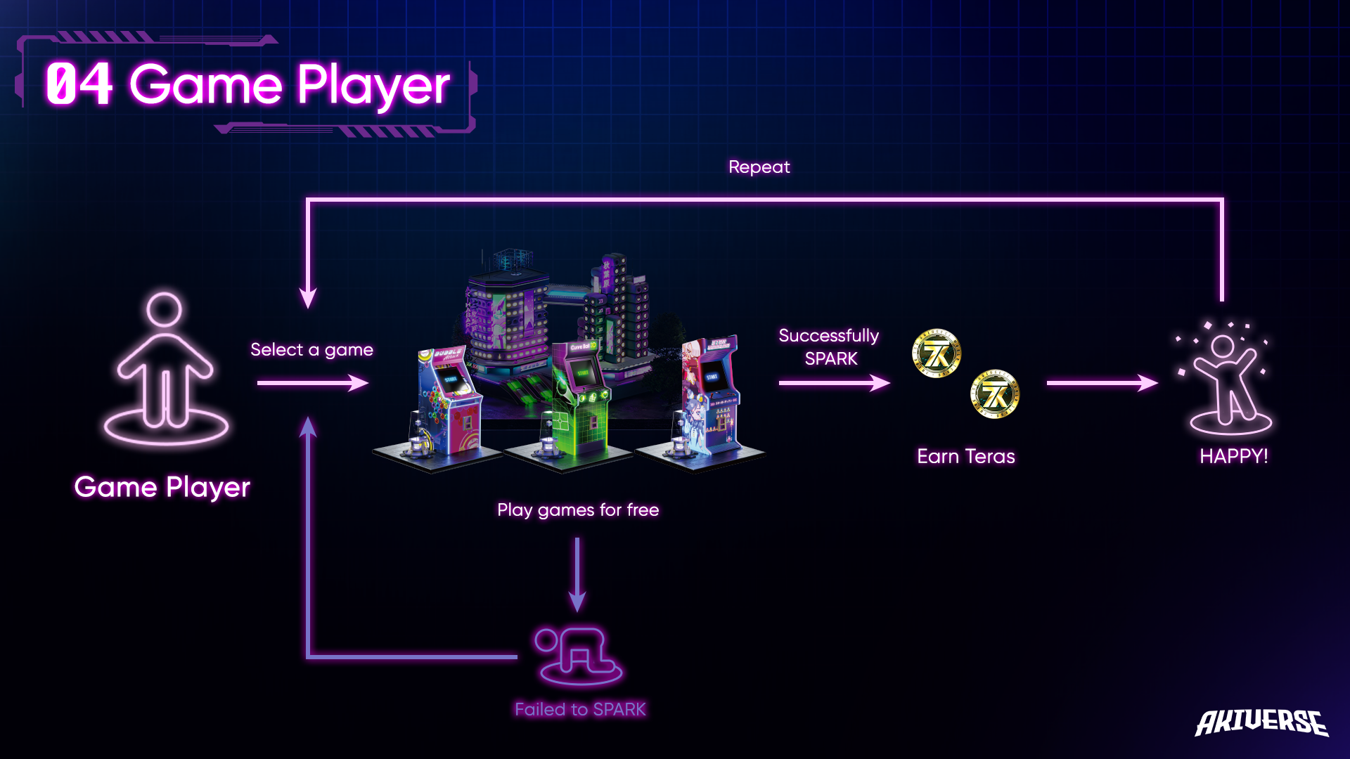 Game Players can play Arcade Machine, located in Game Center in AKIVERSE, for free and earn Teras  as rewards according to their game scores.